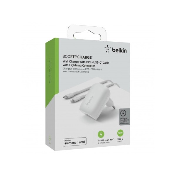 Adaptateur secteur - technologie PPS - 30 Watt - 3 A - PD 3.0 (24 pin USB-C) - blanc