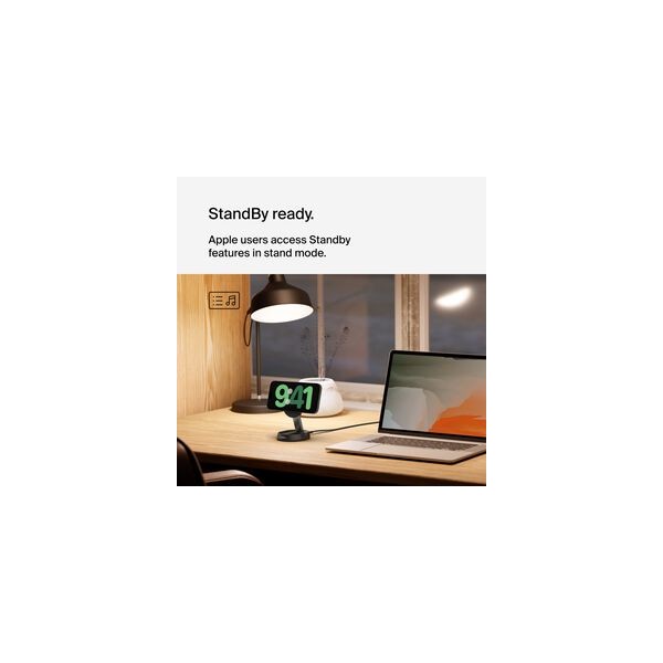 Fast charge your iPhone or other Qi2-compatible device up to 15W. Qi2 technology optimizes energy usage and safeguards your device's battery life. Use the adjustable tilt in either pad or stand mode. Apple users with MagSafe-compatible devices can take advantage of Standby compatibility.