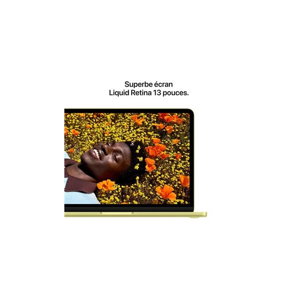Sa finition élégante en jaune agrume apporte une touche moderne et audacieuse qui ne passe pas inaperçue, tout en s’adaptant aussi bien à un environnement professionnel qu’à un cadre plus décontracté comme un café. L'écran Liquid Retina de 13 pouces sublime chaque image avec des couleurs éclatantes, une luminosité généreuse et une précision des détails qui rend chaque contenu agréable à regarder.
